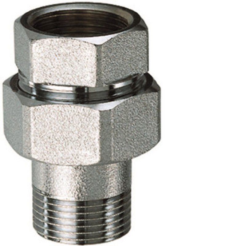 Соединитель латунный FAR FC 5150 1 1/2 Ду40 Ру10 3-х компонентный прямой хромированный, уплотнение - PTFE , присоединение ВР - американка