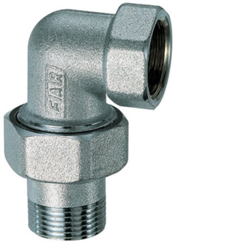 Соединитель латунный FAR FC 5200 1 1/4 Ду25 Ру10 3-х компонентный угловой хромированный, уплотнение - PTFE , присоединение ВР - американка