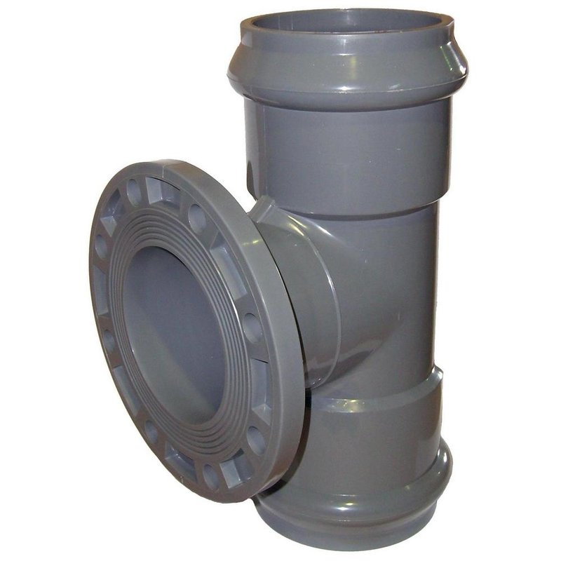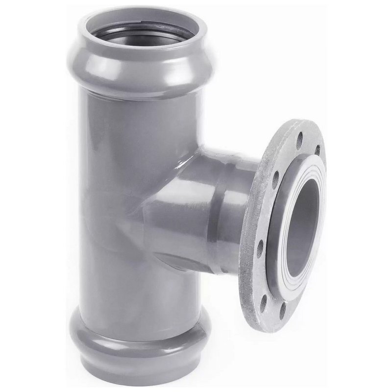 Тройник Хемкор Дн110х100 Ру10 90° напорный, НПВХ, присоединение - раструб/фланец стальной, SDR26